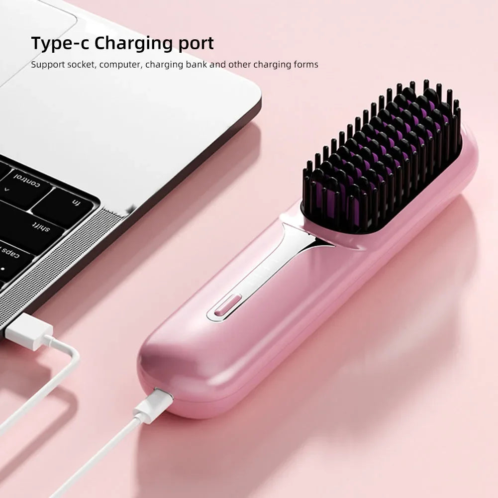 LISSYA - Brosse lissante sans fil, pour tous types de cheuveux - Effet Brushing pro en 2 min, chauffe rapide & anti-frisottis